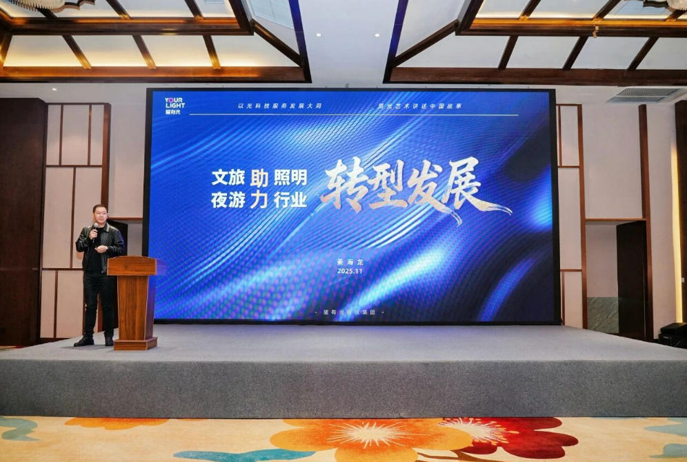 作为中国照明学会设计师工作委员会委员,大会期间姜海龙总裁在照明工程设计论坛作《文旅夜游助力照明行业转型发展》主题演讲报告,围绕照明行业面临的挑战与转型路径,分享了耀有光以文旅夜游推动行业高质量发展的实践与思考。他表示,面对政策收紧与市场竞争,企业应推动从项目思维向产品思维、从工程建设向持续运营的转变,通过“小而美”的轻投资、强运营模式,实现从照明服务商到文旅运营者的跨越,呼吁行业以长期主义面对新常态,加强跨界融合与能力重构,携手开拓文旅夜游新赛道,共创照明产业新价值。